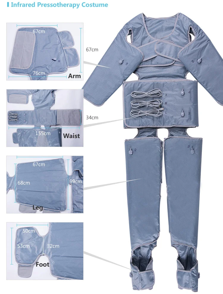 Inflatable/heating parts: arms, waist, legs, feet