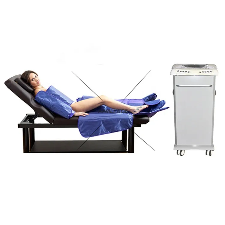 The pressotherapy, with a set of cloth-like accessory and 20 pieces of air bags (10 pairs, or 10 pieces on each side of body), which allows for pressure by cycles or all-together for both the whole body and certain parts of the body, is a compression system designed to increase the venous and lymphatic flow and enhance extra-cellular fluid clearance.