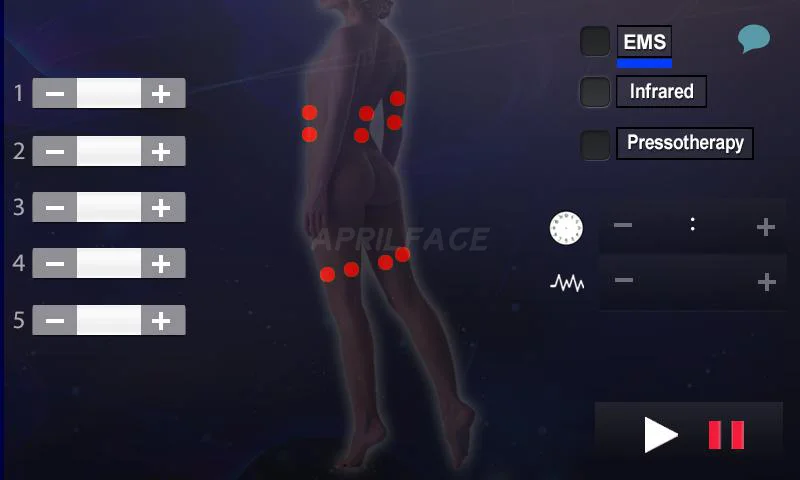 By creating electronic pulse to stimulate special points on the body, EMS (Electro Muscle Stimulation) can effectively regulate bio-electric and endocrine system and accelerate metabolism, reaching remarkable effect of weight losing and skin tightening.