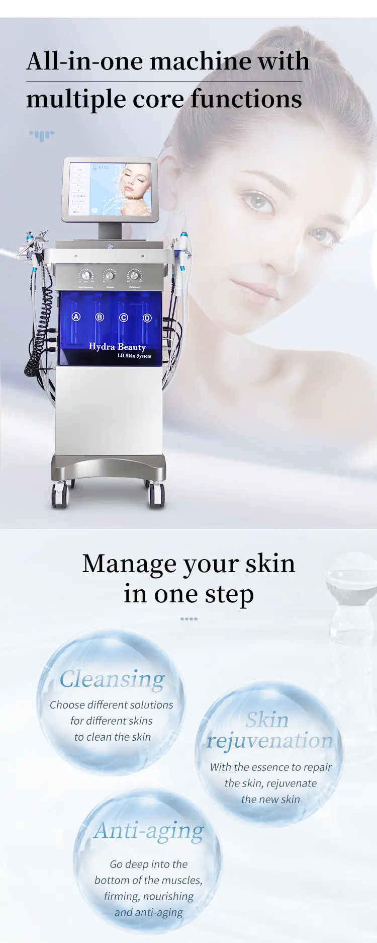 Technology | Hydro dermabrasion Bio microcurrent Vacuum pen Spray mist gun Photon light Ultrasonic Dermabransion High frequency Skin scrubber |