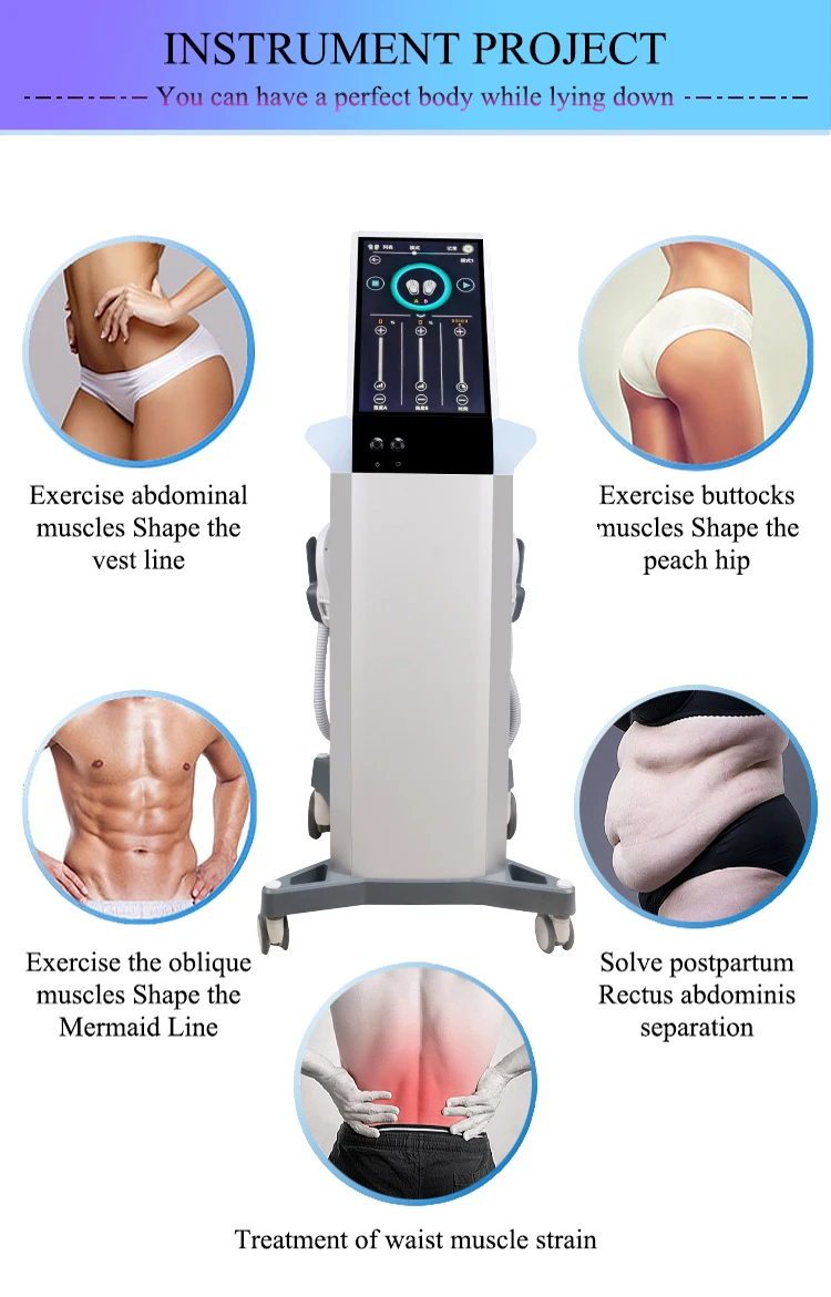 Using high-intensity focused electromagnetic field technology → through stimulation of nerves → continuous expansion and contraction of autologous muscles → extreme training → deep remodeling of muscles→ growth of myofibrils (muscle enlargement)→ production of new collagen chains and muscle fibers (muscles) Hyperplasia)to train and increase muscle density and volume