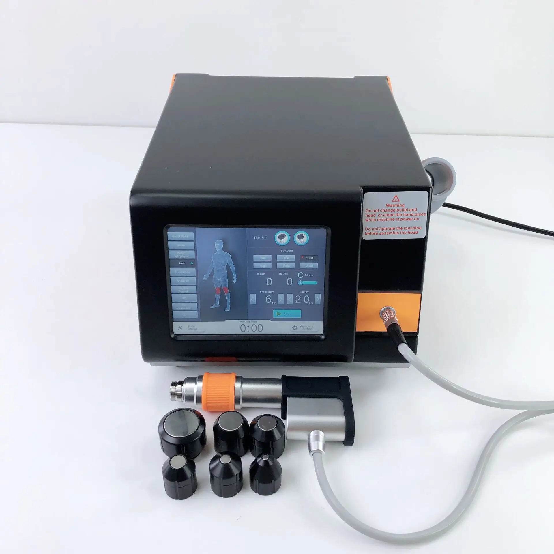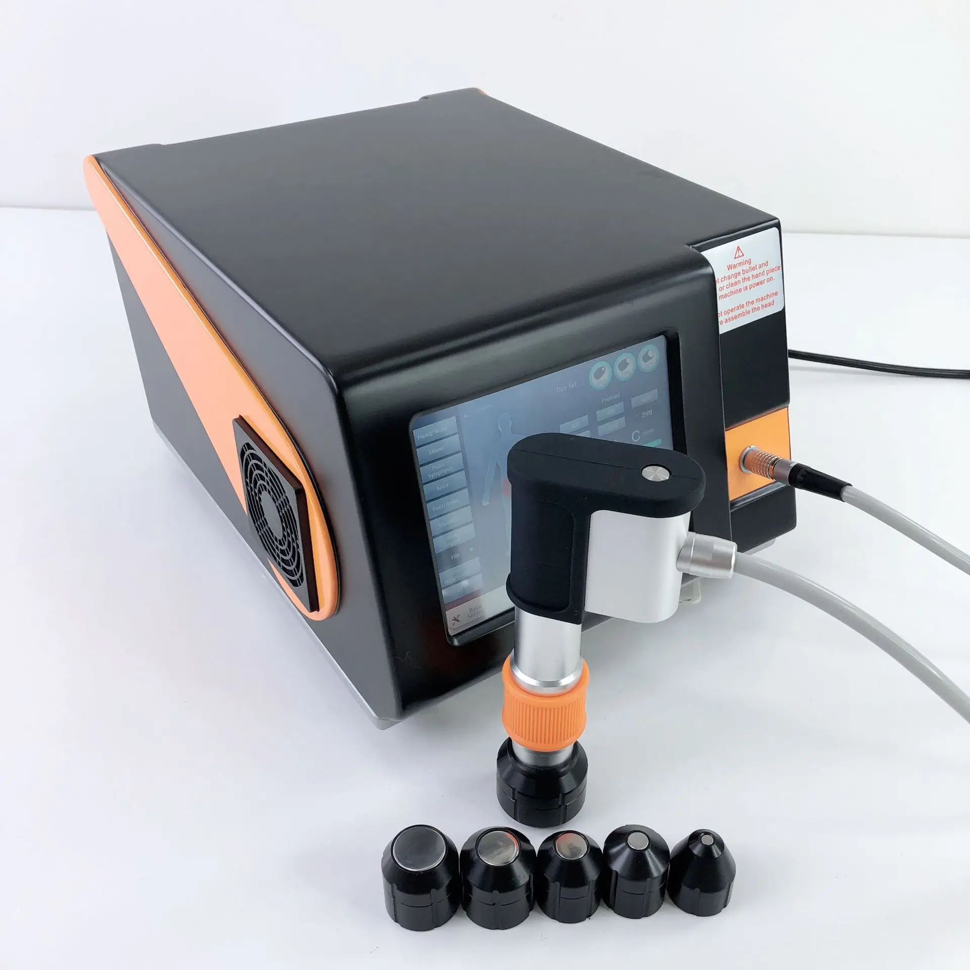 1.ESWT-KP-B PRO is an Electromagnetic shock wave therapy. It comes with one handle and 5 heads. These heads in different size
