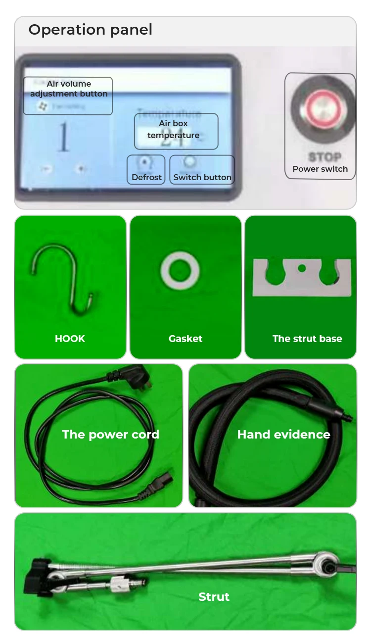 This product uses frequency conversion air compressor device to compress the air and send out cold air through the refrigeration device to cool the epidermis so as to protect the epidermis, relieve pain and make the high energy density act on the target tissue without damaging the epidermis.