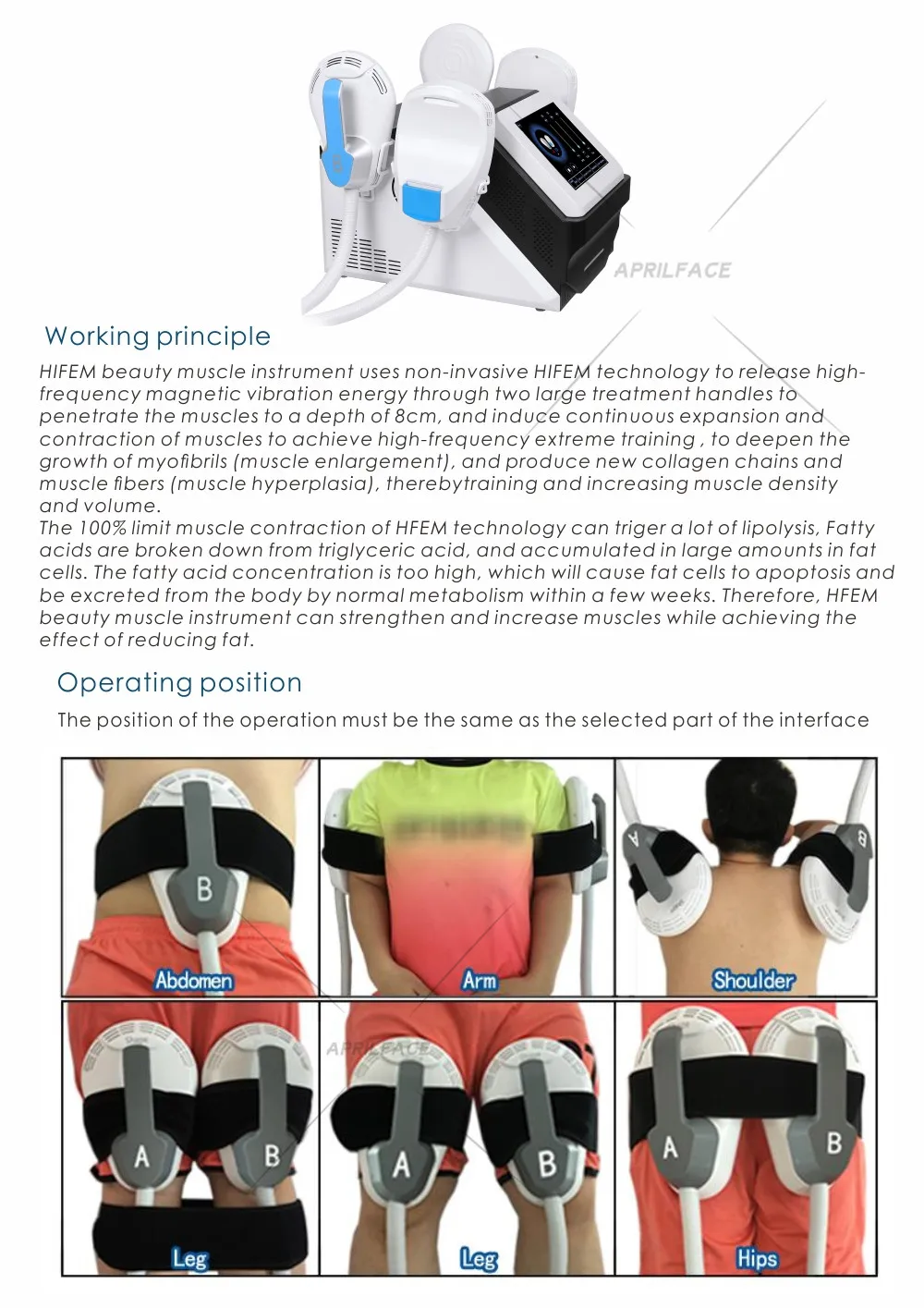 Newest desgin EMShape Body slimming High Intensity Pulsed Electromagnetic (HIPEM) technology for body slimming, firming and fat burning. Professional device for beauty salons and physicians who want to offer their clients the most up to date and effective non-invasive body contouring treatments..