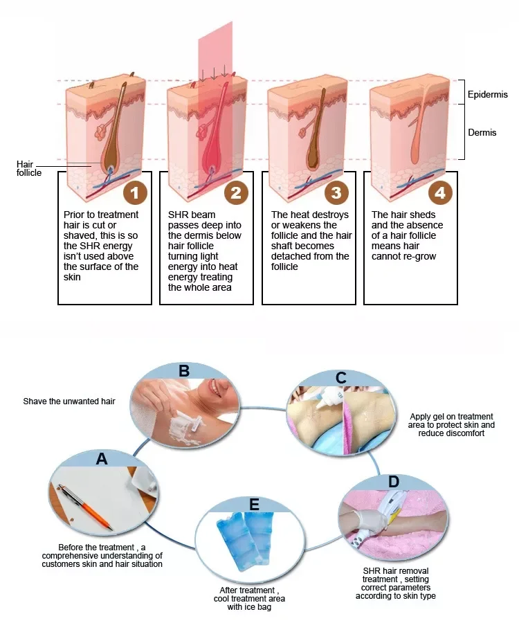 IPL hair removal is with new technology (Advanced Fluorescence Technology) uses low andequal energy. The special filter cuts 950-1200nm wavelength, which is useless in treatment and absorbs water to make patient feel painless IPL stands for a technology for permanent hair removal which is having a sweeping success. The system combines laser technology and the benefits of thepulsating light method achieving practically painless results. Even hairs which until now have been difficult or even impossibleto be removed, can now be treated. “In Motion”represents a breakthrough in permanent hair removal with light technology. The treatment is more pleasant than with the conventional systems and your skin is better protected.